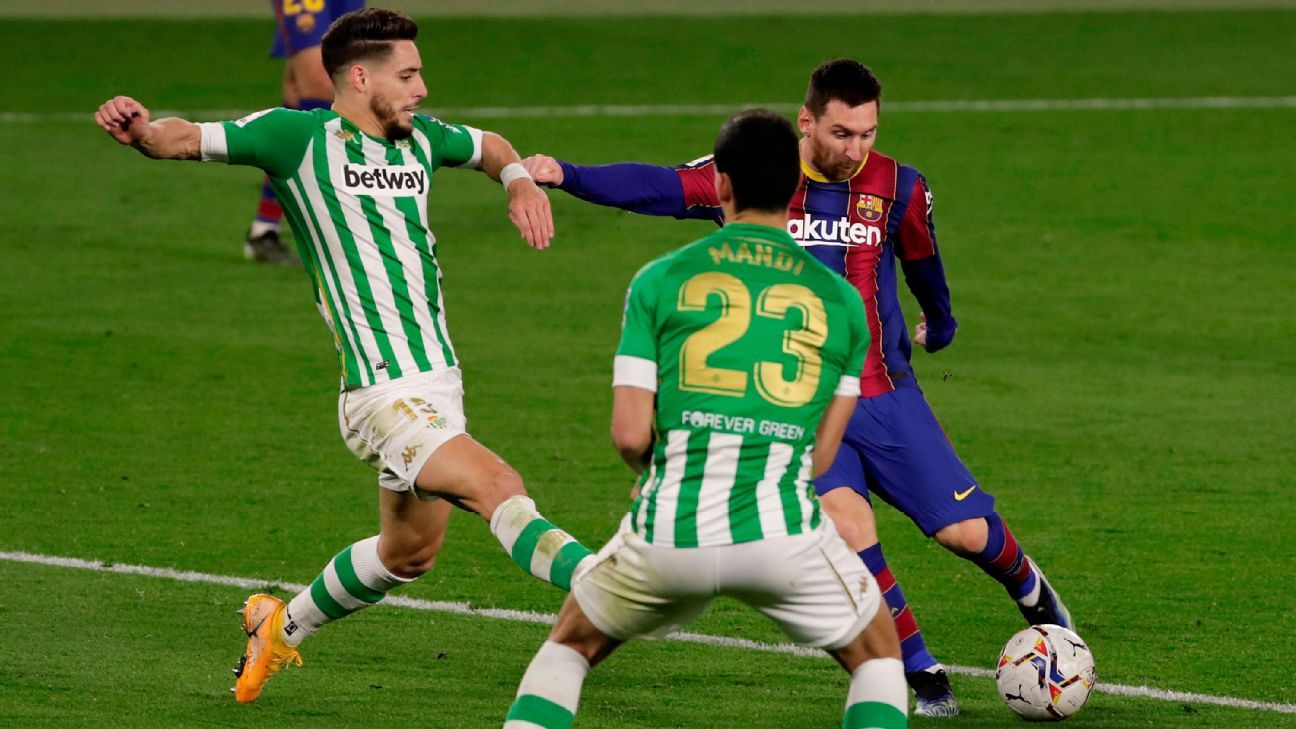 Barcelona faces real betis in a la liga match at the estadio benito villamarín in seville, spain, on sunday, february 7, 2021 (2/7/21).